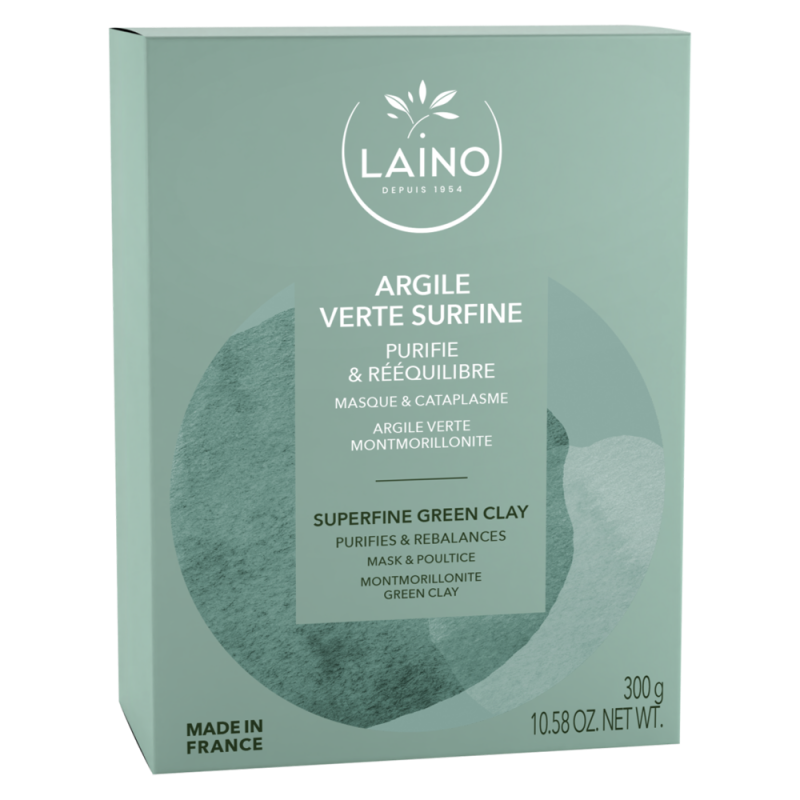 Cette argile verte surfine de Montmorillonite Laino absorbe l’excès de sébum pour purifier et rééquilibrer l’épiderme de par sa richesse en oligo-éléments et minéraux.